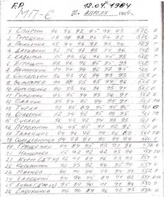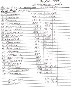 Below you can see copies of the pages of my coaching diary from year 1984 with Free Pistol results.