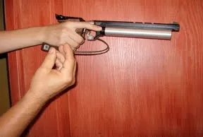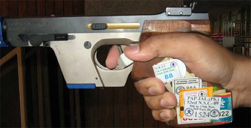 That said, there also are shooters which let a forefinger play an active role in holding a gun. They are holding a grip in the fork between thumb and forefinger and achieve superior results. This technique had been used many times and most successfully by a champion of the USSR, Europe and World Champion Eugene Rasskazov.