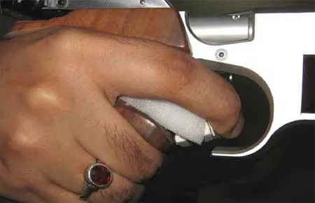 One has to glue some pieces of this material to the grip so that they would fill the space between it and the «shooting» finger. The finger will get additional support along it.