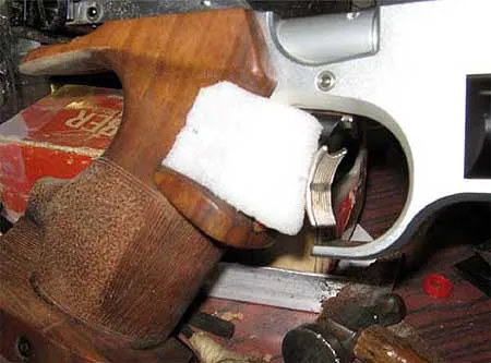 And another example: the famous «Admiral», Alexei Petrovich Danilov, who for many years was a gunsmith of the USSR team, asked me once to finish fine-tuning of the revolver grip, made for Mahmoud Umarov. Mahmoud Bedalovich came to the studio, I put the grip on, and he went to check it. He then returned with the target which had 5 nines of 30 shots and asked to put the old handle back. «I’ll not shoot with this one – it is too comfortable» - he said, and left without further explanation. His old grip I remember well - very dark walnut and no anatomical adjustments, almost round, only a small ledge made for the thumb.